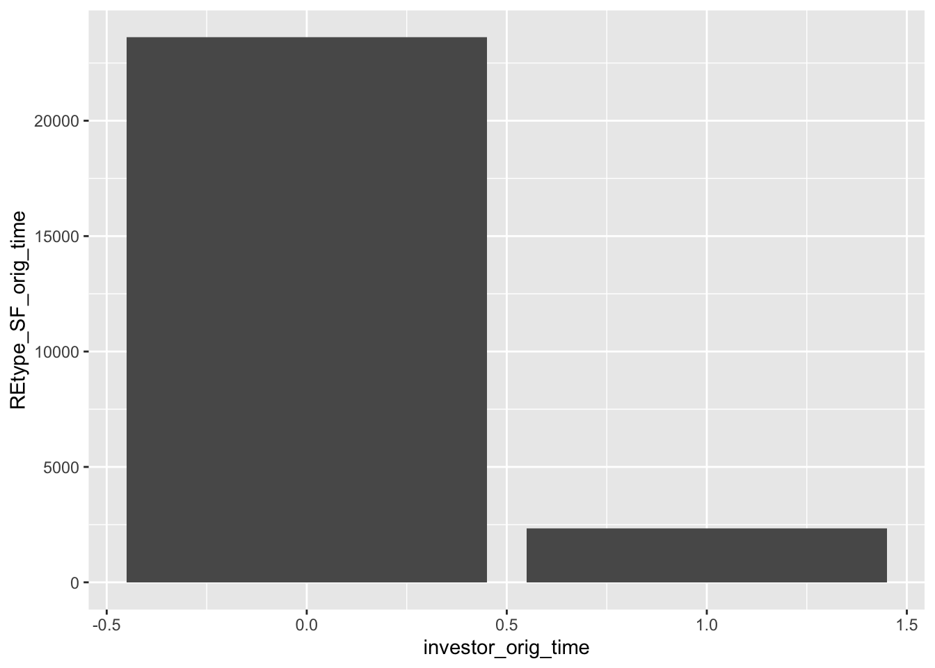 ggplot(data=mortgage_all, mapping=aes(x= investor_orig_time,y=REtype_SF_orig_time))+